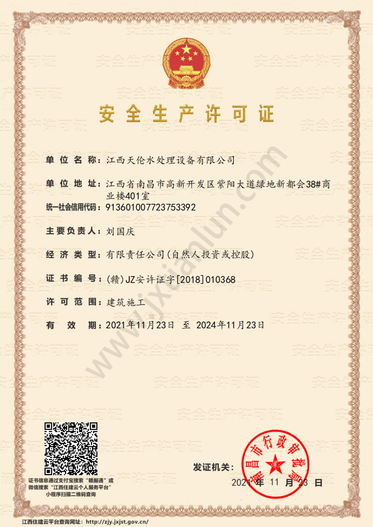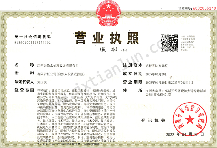 2005年:天倫進入高新開發(fā)區(qū)留學生創(chuàng)業(yè)園,進入快速發(fā)展階段,成立江西天倫水處理設備有限公司